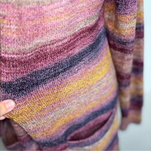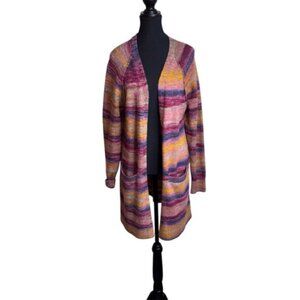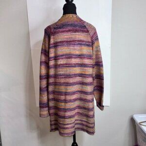 Lucky Brand Multicolour Striped Women's Sweater Medium Longline Pockets Open