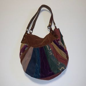 Lucky Brand Multicoloured Boho Leather and Textile Patchwork Hobo Purse