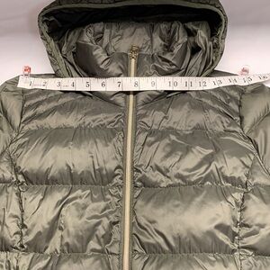 Lucky Brand Nylon Puffer Jacket w/ Hood Down Filled Colour Army Green Size Small