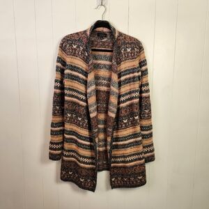 Lucky Brand Open Front Long Sleeve Cardigan Sweater Cotton Pink Blue Fair Isle