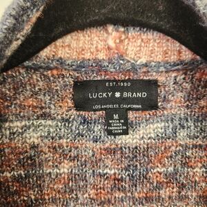 Lucky Brand Open Front Long Sleeve Cardigan Sweater Cotton Pink Blue Fair isle