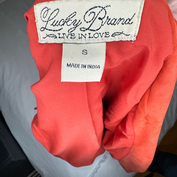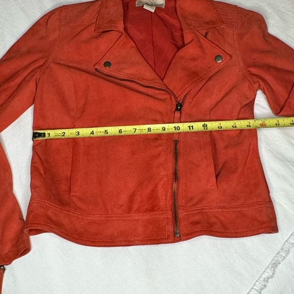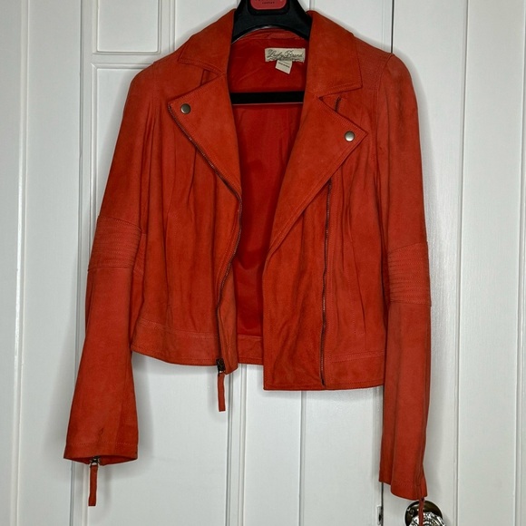 Lucky Brand Outpost Suede Moto Jacket Burnt Orange Edgy Goat Leather soft sexy