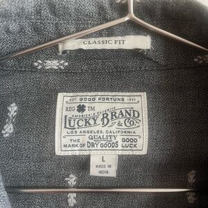 Lucky Brand Pearl Snap Shirt Men's Large Gray Western Style Classic Fit