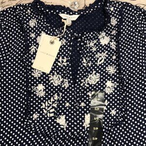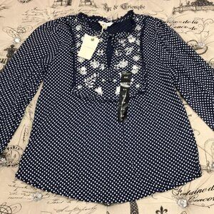 Lucky Brand Polka Dot Embroidered Yoke Top