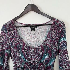 Lucky Brand Purple Blue Paisley Print Scoop Neck Long Sleeve Dress