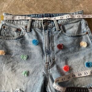 Lucky Brand Raw Edge Denim Jean Shorts Pom Poms 27