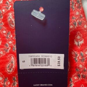 Lucky Brand Red Floral Mix Border Boho Top Pullover T-Shirt sz S