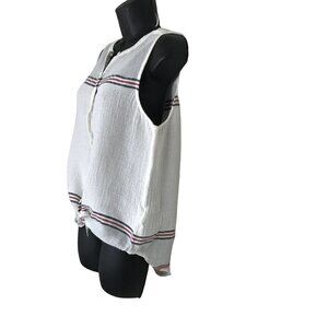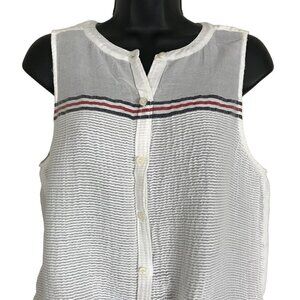 Lucky Brand Red White & Blue Striped Sleeveless top Size M A Really Nice Cotton Blend Lightweight Button Down With Ties Which Can Be Worn Either Tied Or Just Regular Perfect For Spring & Summer