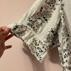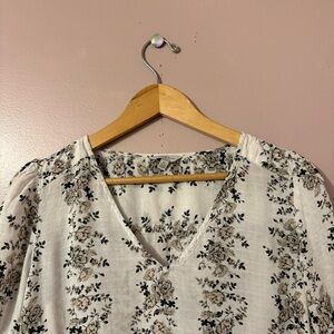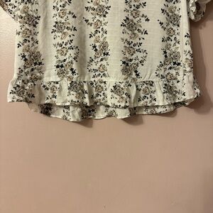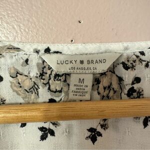 Lucky Brand Relaxed Fit Ruffled Hem Vneck White Floral Top Women Size M