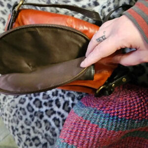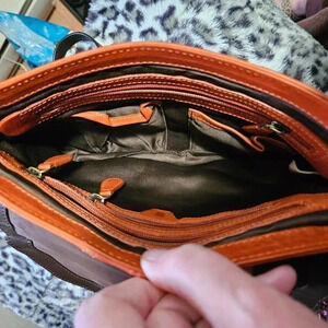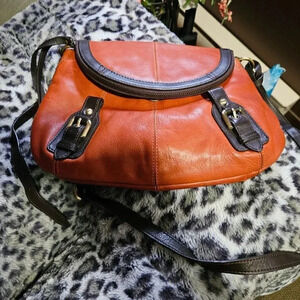 Lucky Brand | Rust and Dark Brown Leather with Brass Hardware Crossbody Bag