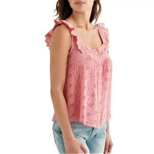 Lucky Brand Sleeveless Button Up Embroidered Top Women Size S