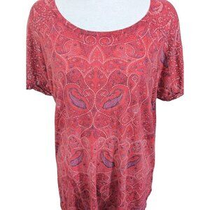 Lucky Brand T Shirt Womens Plus 3X Orange Paisley Split Back Tee Short Sleeve