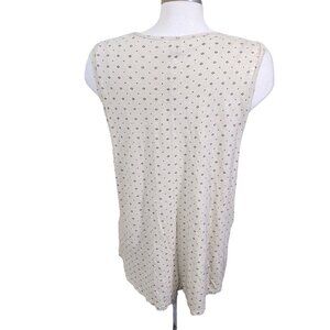 Lucky Brand Tank Top Womens Size XL Linen Blend Beige Blue Applique Diamond Dot