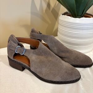 Lucky Brand🍀 Taupe soft suede loafers Sz 8.5 buckle, studded