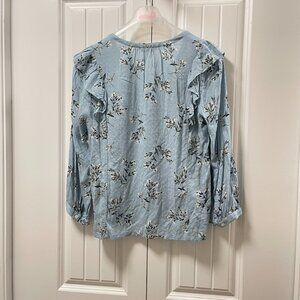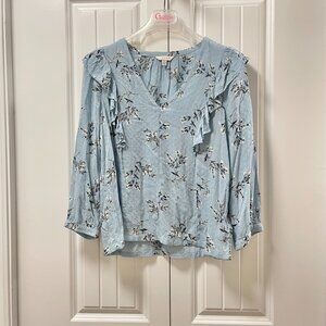 Embrace effortless boho vibes with this dreamy Lucky Brand Taylor Ruffle Peasant Blouse. Featuring a soft light blue hue with delicate floral patterns, this blouse offers a flattering V-neckline, ruffle details, and billowy long sleeves. Perfect for casual days or dressed-up evenings!