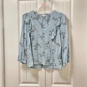 Embrace effortless boho vibes with this dreamy Lucky Brand Taylor Ruffle Peasant Blouse. Featuring a soft light blue hue with delicate floral patterns, this blouse offers a flattering V-neckline, ruffle details, and billowy long sleeves. Perfect for casual days or dressed-up evenings!