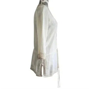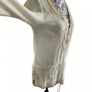 Lucky Brand Top Boho Cream Metallic Gold Embroidered Women's size Extra Small