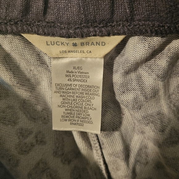 Sleep in style and comfort with this adorable Lucky Brand Ultra Soft Tank & Shorts Pajama Set! The striking leopard print in grey hues adds a touch of sass to your bedtime routine. But it's the ridiculously soft material that will truly win your heart - you'll feel like you're wearing a cloud! The tank top and shorts combo provides a relaxed fit, while the cute design accentuates your curves in all the right places (especially on the booty!). Treat yourself to the ultimate sleep-to-lounge experience. Get ready to slumber in style! Worn once.