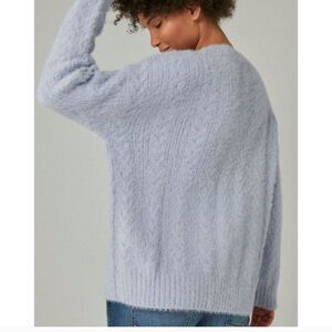 Lucky Brand V-Neck Relaxed Fit Eyelash Sweater softer-than-soft sz S blue cable