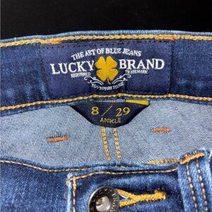 Lucky Brand Women's 8/29 Ankle Sofia Boot Denim Blue Jeans Dark Blue Flare