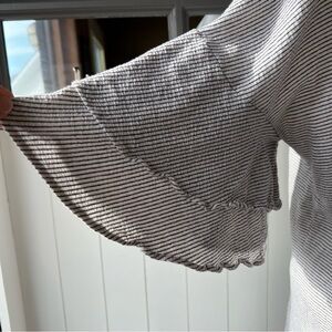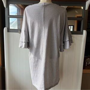 Soft and comfy textured knit v- neck shift dress. Dolman three-quarter ruffled sleeves with dropped shoulders. In Excellent Pre-loved condition💕