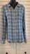 🍀 Lucky Brand Women’s Blue and Green Plaid Button Down Long Sleeved Shirt Medium