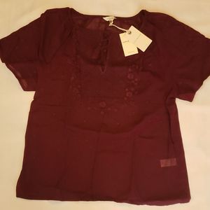 Lucky Brand Women's Embroidered Flutter Sleeve Top