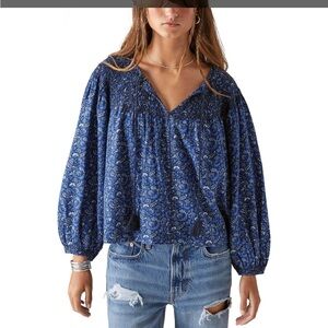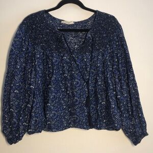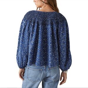Lucky Brand Womens Top Size M Blue Paisley Floral Oversized Baggy Boho