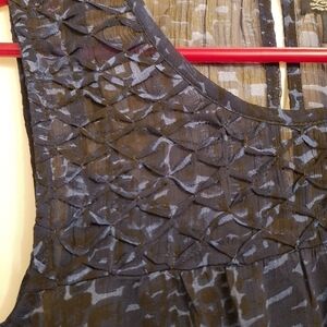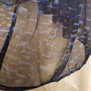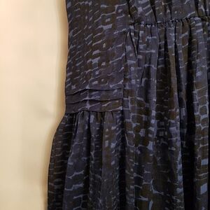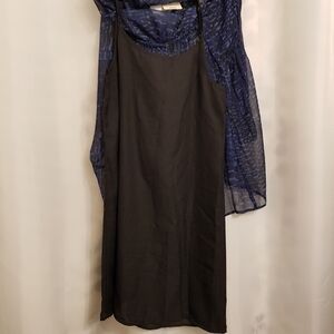 Lucky Brand blue & black small sheer dress with black slip under, blue colors throughout the fabric, accent stitching on the sides, price tag US $$