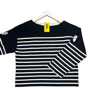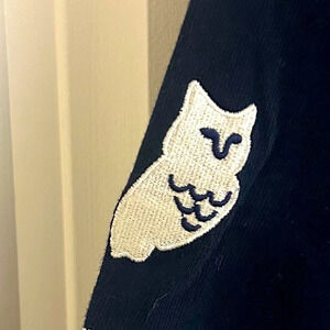 Lucky Chouette is a Lux Korean designer brand- this amazing and in perfect condition thicker mild scoop neck shirt in L is a rare gem! So cute! One sleeve owl can be seen on the front arm while the other matching owl can be seen from behind, the cutest little owl is at the bottom corner. Such a beautiful and unique piece- it’s also a thicker consistency so amazing for fall/winter