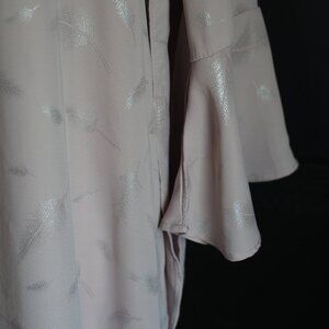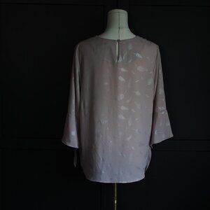 Lucky & Coco | Pale Pink Shimmery Leaf Print Blouse w Flutter Sleeve Cuffs