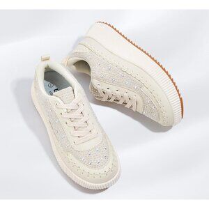 Lucky Step Women Beige Rhinestone Sparkly Chunky Retro Braided Casual Sneakers