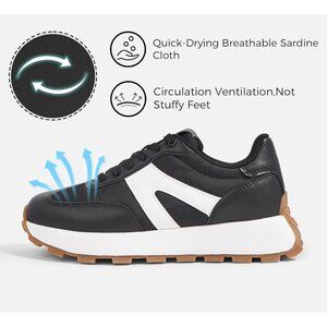 LUCKY STEP Women's Platform Fashion Sneakers Retro Classic Trainers Casual Lace-up Stylish Tennis Running Walking Shoes Rubber sole