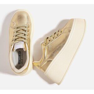 Lucky Step Women Gold Platform Low Top Classic Wedge Retro Canvas Sneakers
