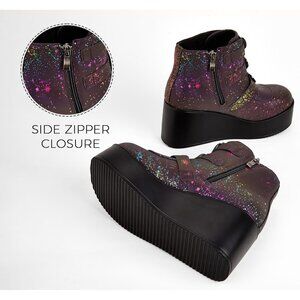 Lucky Step Women Navy Reflect Round Toe Zipper Wedges High Heel Rave Buckle Boot