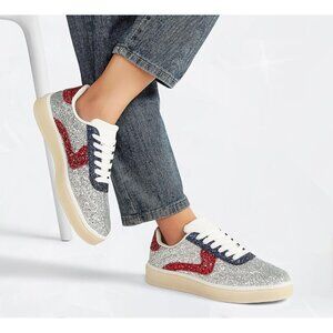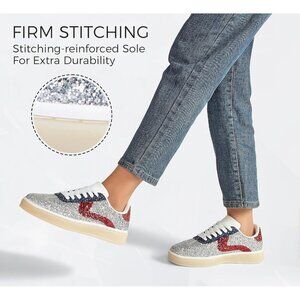 【Non slip】: These women's glitter sneakers include a durable rubber outsole, offering excellent traction on various surfaces, ensuring stability and safety with every step.