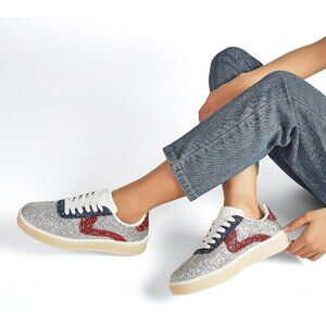 Lucky Step Women Silver Red Sparkly Bling Shiny Dressy Bedazzled Bridal Sneakers