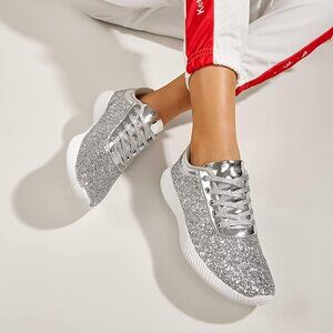 Lucky Step Women's Silver Sparkly Metallic Sequins Lightweight Glitter Shoes