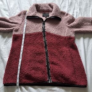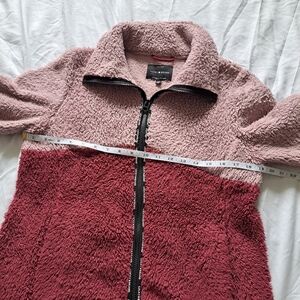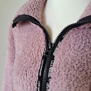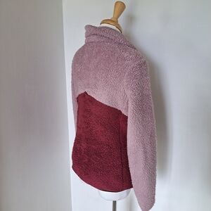 Lucky brand | Pink blocked color sherpa zip up turtleneck womens sweater. women's size small