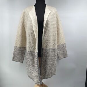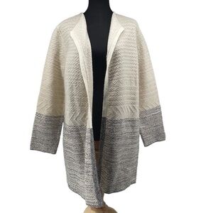 Lucky brand open front cardigan wool blend chunky two tone boho cabin sz lg