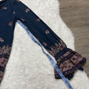 Lucky Brand Top Long Bell Sleeve Size XS Navy Blue Floral