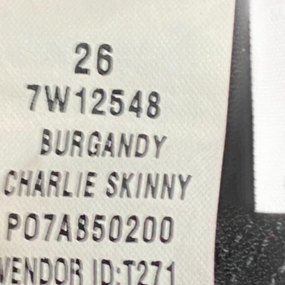 Lucky brand Burgundy Charlie Skinny Coated Denim Ankle Jeans US 2/26
