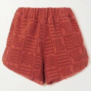 Limited collab w/ NET-A-PORTER. Often inspired by traveling and art, Australian brand, Lucy Folk designs effortlessly chic pieces. These 'Cabana' shorts are made from breathable cotton-terry that's patterned with an ornate design. They have a flexible, high-rise waist and comfortably relaxed fit.