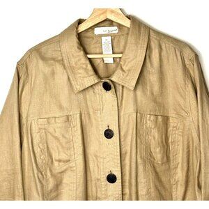 Lucy & Laurel Top Women's Size 3X 100% Linen Beige Button Up Collared Shirt
