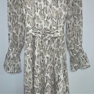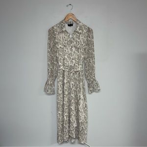 Lucy Paris Dress Size Small Tan Beige Snakeskin Print Long Sleeve Midi Belted