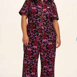 Lucy & Yak Ragan jumper with zip and front short sleeve with a wide cropped leg and elasticated back for comfort