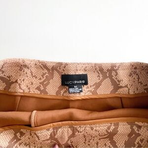 Lucy Paris Snakeskin Mini Skirt Side Zip Kilt Style Women's M. Stretchy. Faux Suede. Decorative side button. Very good used condition. Please see photos for approximate measurements.