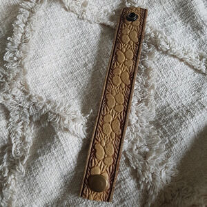 Lue Handmade Leather Cuff tan western boho tooled leather 8.5” Bracelet Upcycle
