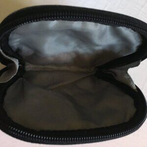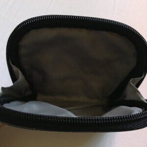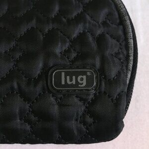 Very good preowned condition small, black, nylon, quilted zip pouch/wallet by lug. Grey, black and silver. Perfect for storing headphones, cards or cash.