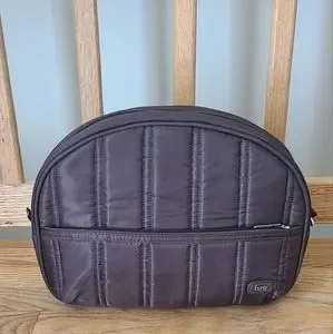 Zippered compartment outside and inside. Sturdy zipper on the case. Plastic lining on the bottom and partly inside.